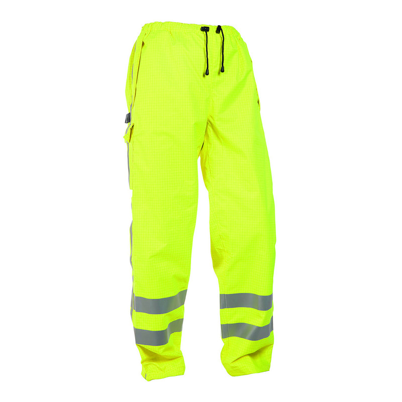 * Elasticated waist with draw cords * Side pockets with hook and loop closure* Adjustable Leg opening with hook and loop closure* Thigh pocket with flap* Tool loop* Leg opening zipper with flap cover* Used in combination with the Weesp, FR AS quilted lining HYD060350 and Multi SNS Jackets* Flame retardant and anti-static* Multi Simply no Sweat (SNS) 260gsm Polyester 99% / 1% Anti-static * 100% FR Cotton lining* Highly breathable providing great comfort * Durable and cost effective * Smooth textile finish* Conforms to the following standards:* EN1149-5:2008 Anti Static- Material Performance and design requirement * EN ISO 14116:2008 Protection against limited spreadOuter material Index 1/12H/60Inner material Index 3/5H/60* EN ISO 20471:2013 Class 1 High visibility* EN343:2003 A1:2007 Class 3:3 Protection against rain * EN 13034:2005:2009 Protection against liquid chemicals (Type 6)* EN ISO 13688:2013 General requirements for protective clothing